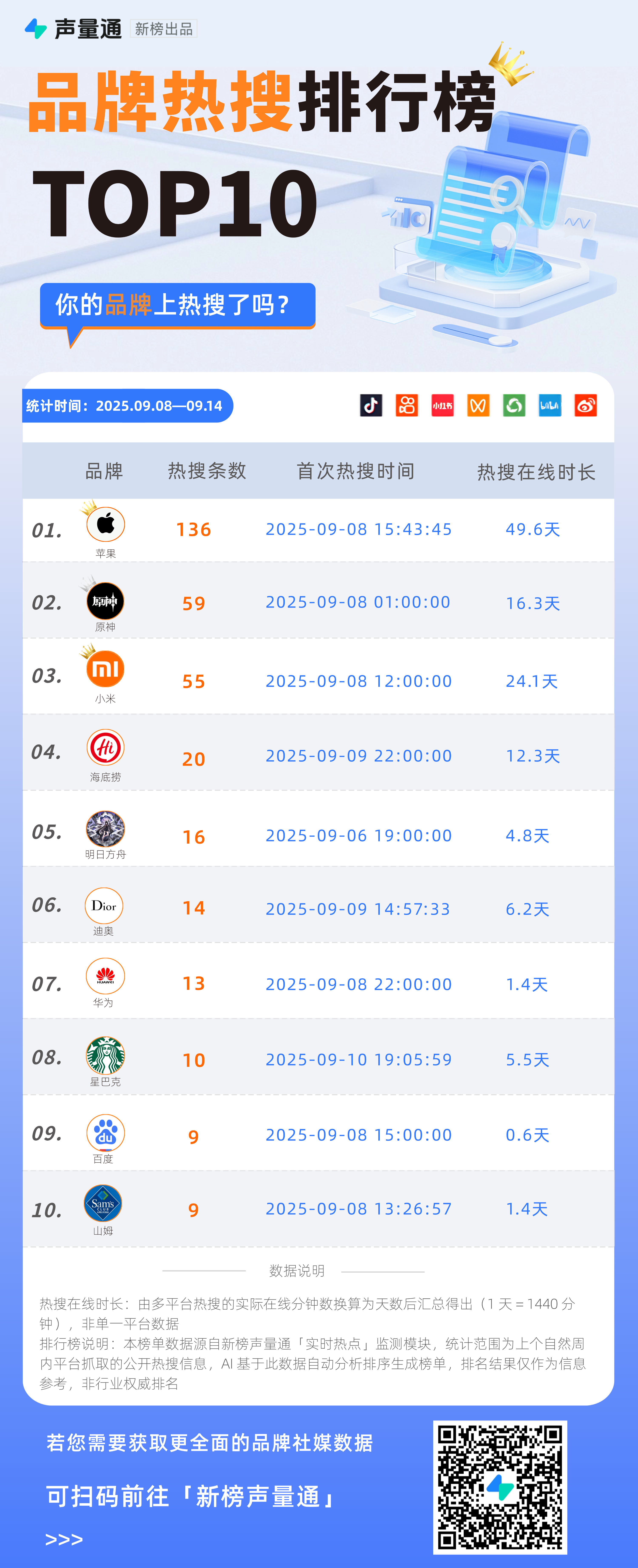 结合新榜声量通的品牌热搜榜,下面我们重点看下部分品牌的 “热搜密码”。