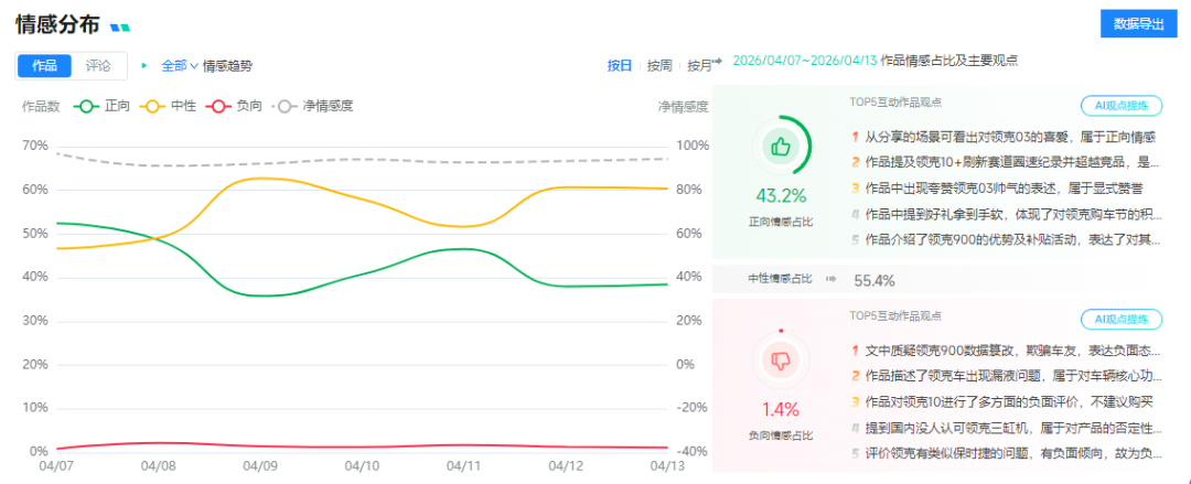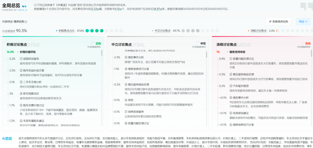 1. 正、中、负向声音全面呈现,量化口碑健康度